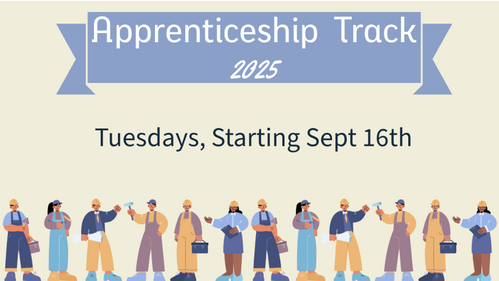 The Apprenticeship Track meets on Tuesday nights from 6-8:00pm starting in September.