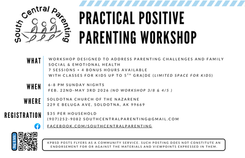 South Central Parenting is providing a parenting workshop on Sunday nights from Feb 22 - May 3. Scan the QR code to register.