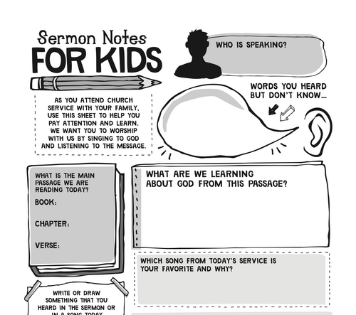 We have sermon outlines and bulletins available at church if you'll be joining us there, or access them by selecting the link below. Sermon note pages for elementary kids and middle school children are also available under the sermon notes tab by scrolling to the bottom of the page.